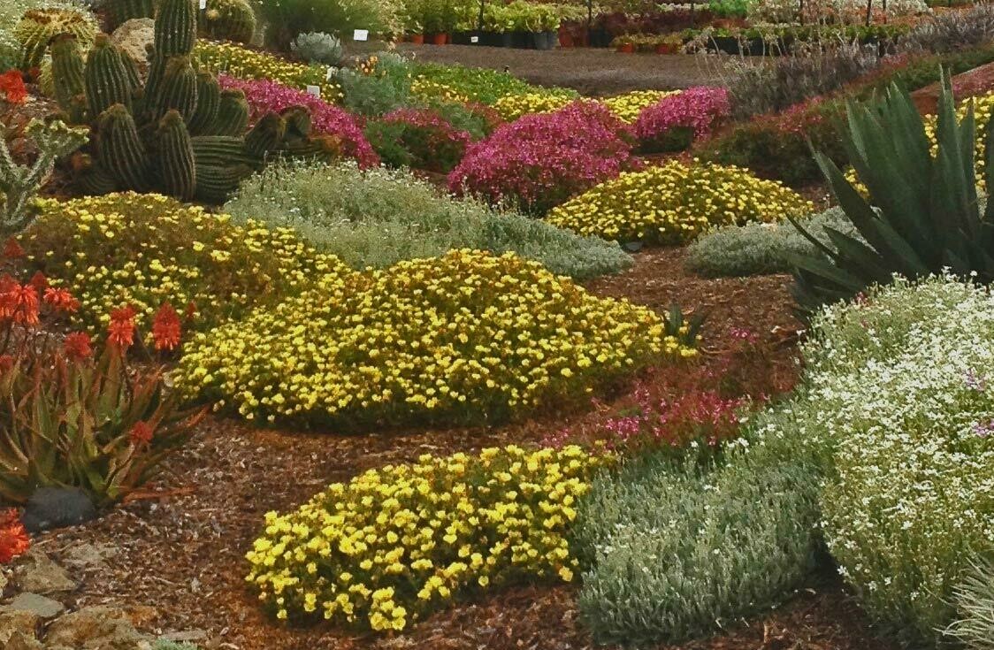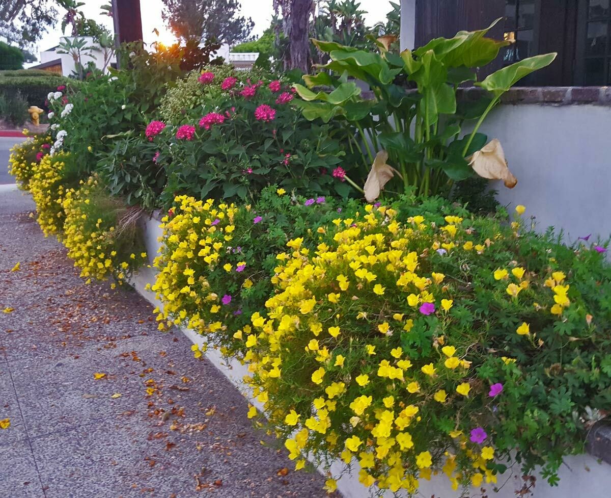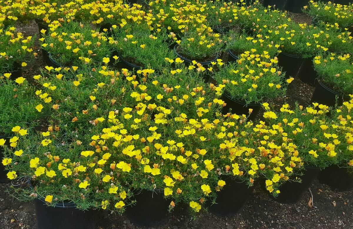 Calylophus hartwegii, commonly known as Trailing Buttercups is a carpet of yellow buttercups that in your landscape or garden, will cheer up the most gloomiest day. This low-growing eye-catching perennial is about 8 inches tall and spreads to a little over 2 feet round. Bright yellow flowers with a long blooming season. Full sun. It goes dormant in the winter. Nice trailing over the edge of planters. Waterwise once established!