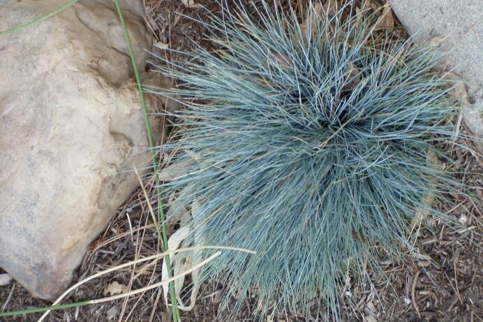 Festuca ovina glauca nana, commonly known as Blue Fescue, grows in short, blue-gray, dense clumps, that flower in the summer. Prefers cool weather to the heat in the summer. Neat appearance and nice color accent in the landscape. Water-wise.