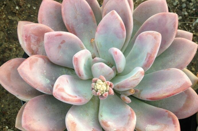 Graptoveria hybrid, commonly known as ‘Blue Candle’, is a great shade succulent that has a waxy, bluish, opalescent foliage. It grows in clumps only 3 inches tall by 8-10 inches wide by ‘pupping’ to the sides. Delicate pink flowers dangle over the foliage as it blooms off and on during the year. Water-wise.