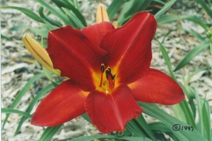 Hemerocallis Hot Lips, commonly known as Daylily Hot Lips is one of our best selling, most popular semi-dwarf, red daylilies! Clear, broad-petaled, large flowers of Marilyn Monroe’s LIPSTICK RED on evergreen foliage bloom almost year-round…especially on the coast. Overall height of 16-18” with flower stems to 20”. Full sun; regular water.