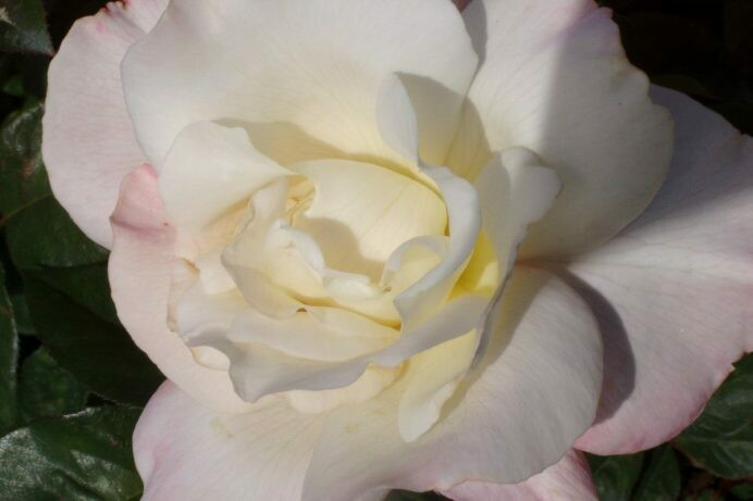The Rosa ‘Pristine’ is another one of our absolute favorites! Elegant 6-7 inches rose blossoms, clear white with soft pink trim that you have ever seen! All on bold, stocky canes and huge dark green leaves with a touch of bronze.