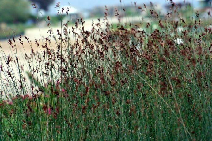 Thamnochortus insignis, commonly known as Vertical Bamboo Rush, is a tough, grass-like, clumping plant is truly upright with slender, jointed, bamboo-like foliage 3-4’ tall, but narrow. Dark tufts at stem ends are a delightful accent against lush, grass-like greens. Regular garden watering is fine, but can also tolerate wet conditions. Full sun to part shade, hardy to low 20’s