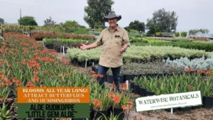 Unlike most Aloe species that just bloom for a very short time, usually between late winter and early spring, ’Little Gem’ blooms ALL YEAR ROUND on the California coastal plain. Arizona and low desert locations will see this species stop blooming during the hottest summer months.
