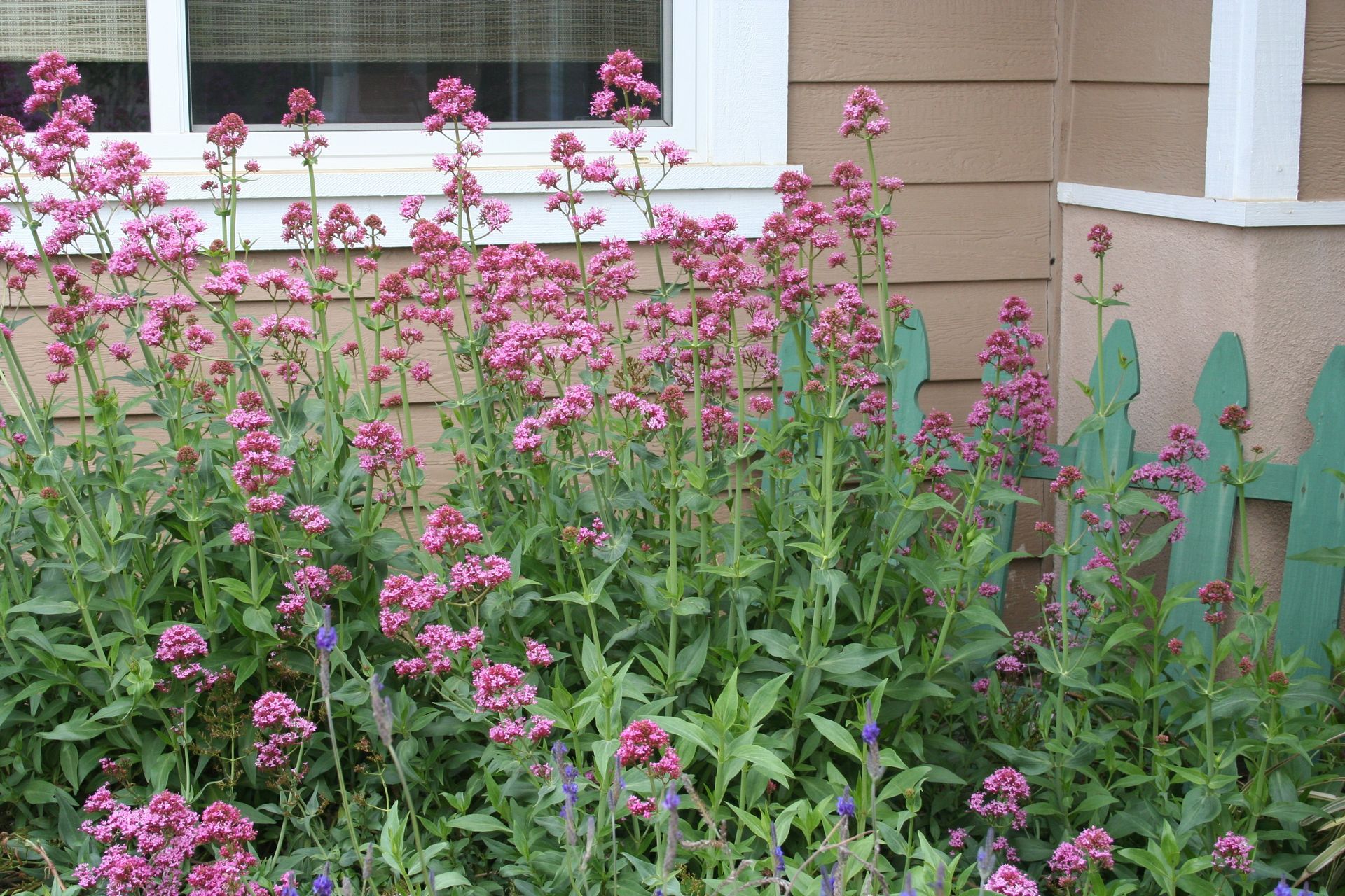 Centranthus ruber is another eye-catcher with its pink, reddish or white flowers on 2-3 foot slender stems. It spreads by re-seeding aggressively, but can be controlled by weeding out new growth & pruning. I often just chop and pull randomly to keep a nice, wild impression. Centranthus makes an absolute beautiful haze of color spring through fall. It is deer and rabbit resistant, attracts Butterflies and is easy to grow!