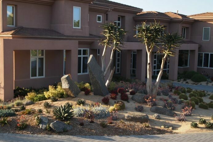 Aloe hyb. ‘Hercules’ is a cross between two tree aloe species, Aloe bainesii and Aloe dichotoma. True to its hybrid form, it is a powerful, fast growing tree Aloe, with incredible, thick, sculptured stems that are like sculpture. Flowers are not all that significant, in the yellow tones, and almost too small to be noticed against the scale of this elephantine plant. It has large, blue-grey, triangular leaves. This is the most dramatic tree Aloe you will ever find!
