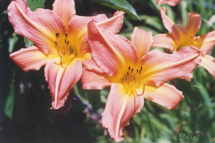 Hemerocallis Peachy Keen, commonly known as Daylily – Peachy Keen. This is a favorite of the pastels. It is a large, fast-growing daylily that blooms most of the year. The foliage is a light, lime-green color achieving a height of 24-26” with flower stems to 3’. The flower is broad ruffled petal, a delicate apricot in color with a rich blush. Full sun; regular water. Evergreen foliage.