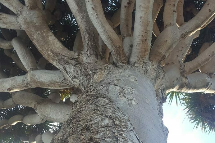 Draceana draco, commonly known as Dragon’s Blood Tree, these ancient specimens are world famous for their “Popeye-arm” branches, sculptural trunks, and intrinsic value. It is said that the red resin that bleeds from wounds on the trunk has been used for the beautiful stain on the wood of Straduvarius violins!