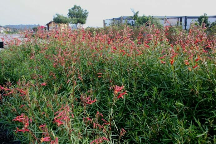 Lobelia laxiflora, commonly known as Orange Toro Bells is a graceful perennial with slender leaves and tubular, red/orange flowers that will create a wildflower appearance in your landscape. Approximately 2.5′ tall by 4+’ wide and spreading. Adds graceful “wildness” to the landscape! Great water-wise choice & attracts Hummingbirds. Loves the sun to some partial shade. Best if occasionally pruned to the ground during growing season to freshen foliage and flowers.