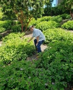 Velvety green leaves have a maroon pattern in the center. Grows rapidly, spreading up to 8’ or more, but not getting taller than about 2’. Excellent plant for all conditions- sun, shade, wet, dry. Extremely fire-resistant- even dried materials hardly burn. Amazing vegetation for large areas and slopes, providing a lush green coverage. No pests, herbaceous stems, rapid growth. Tender to frost and freeze, but will quickly grow back if damaged.
