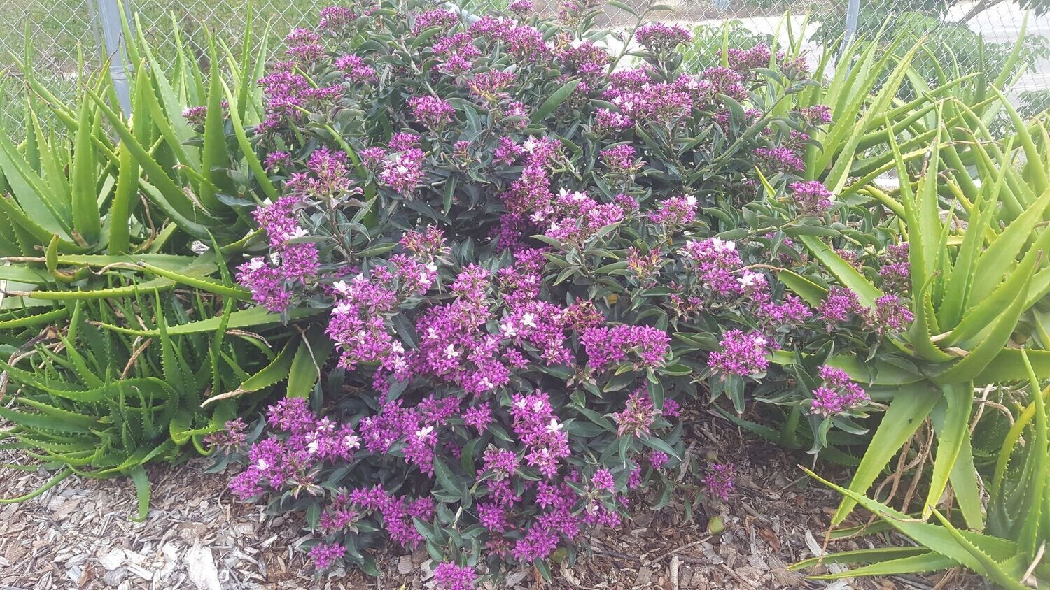 Interestingly, this beautiful leafy tropical plant is a true cactus! A hint might be the long, sharp, jet-black spines hiding under the leaves. It makes a colorful exotic shrub where neither frost nor freeze is an issue, so definitely, a coastal, or potted specimen plant that can be moved in and out of doors to protect from the cold. I’ve seen mature plants become almost 16’ tall when growing in the landscape, but pruning is often effective and appreciated, keeping it a more moderate-sized, and shaped, flowering shrub. The purple flowers, which are presented almost year-round (even when the leaves have dropped off for winter) are born at the tips of the stems, and look and feel as if they’re made out of pure wax! Full sun is best for flower production, although light shade works too. Hardy to only about 30 degrees.