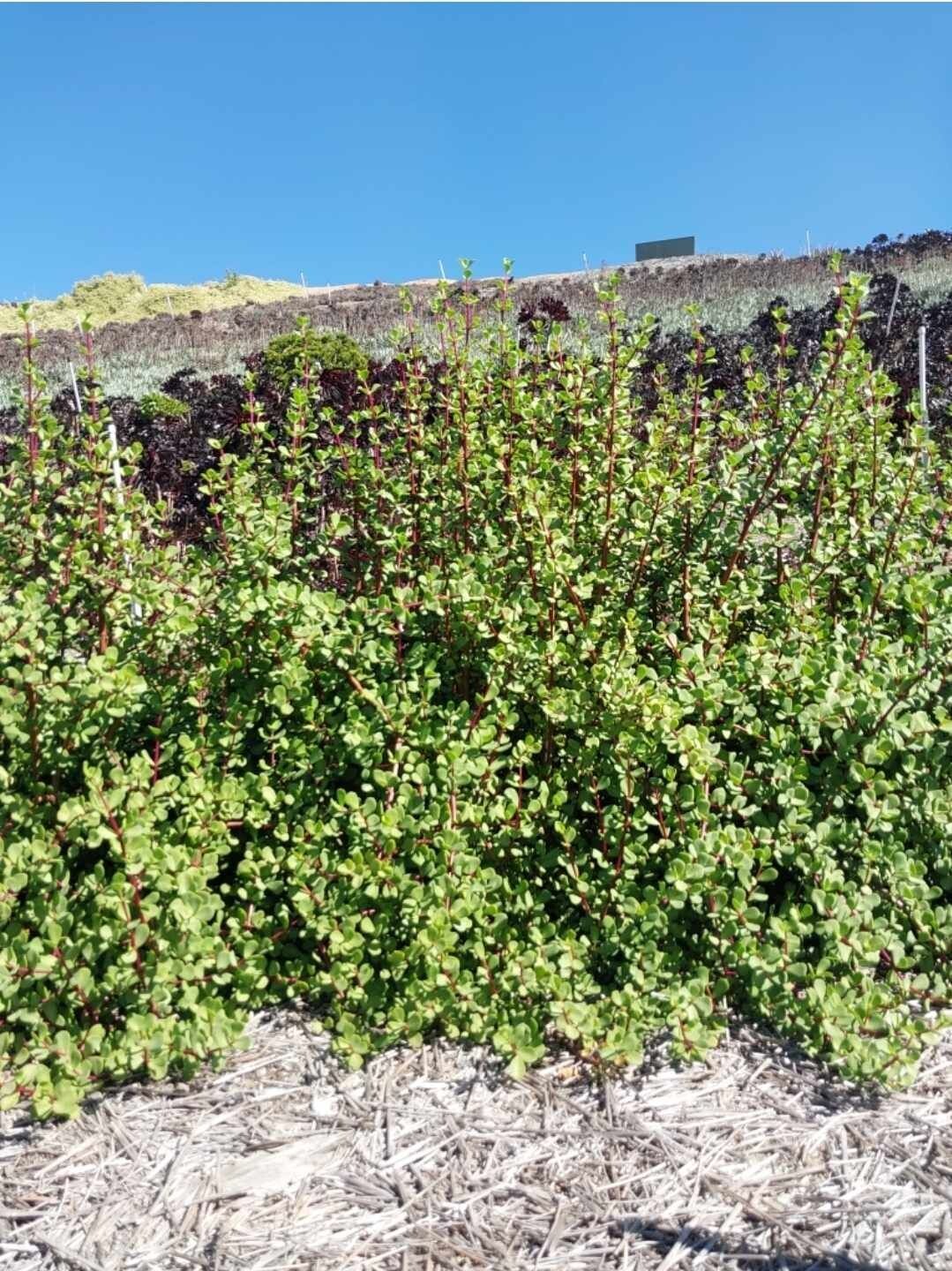 Need an evergreen hedge (up to 8’ tall) that is easily pruned because it never gets woody stems? Need a striking vertical accent with rich, juicy green leaves and contrasting red stems that is always clean and easy to maintain? How about a border plant that is absolutely fire-proof to help protect your property?