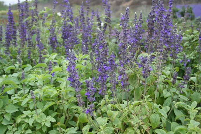 Salvia Mystic Spires, commonly known as ‘Compact Indigo Sage’, POWERFUL PURPLE best describes this long flowering perennial! Butterflies love it and so will you. Blue-violet flowers on deep green foliage to a height of 2 feet and spreading easily to 3-4 feet makes this salvia a wonderful choice for larger spaces. So add some drama to your garden with a SPLASH OF DEEP BLUE/ PURPLE. Loves the sun, likes regular watering, but when established, can be quite drought tolerant.